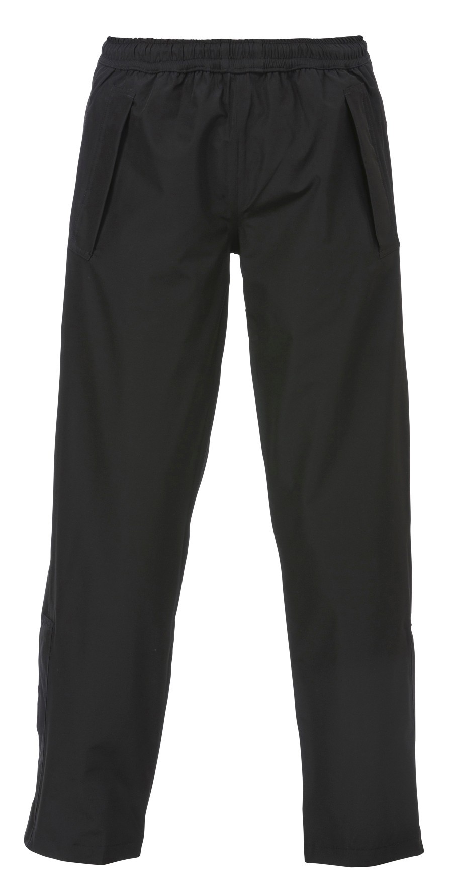 Tapede sømmer. Elastikk i midjen med regulerbar snøring. Borrelås og glidelås i ben. Sidelommer med gjennomgrep. Baklommer med glidelås. Vannsøyle 5000mm.