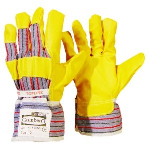 107.9550 ArbeidshanskerSyntetisk skinn m/mansjett, halvfôret. Rimelige "bruk og kast" hansker. Til generell beskyttelse mot smuss og skitt. Vanntett materiale.Str. 10Pris per kartong 1x120 par.