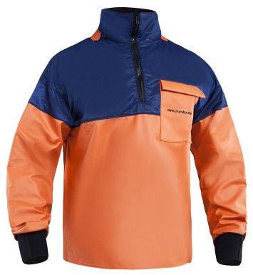 Anorakk av PVC materiale med neoprene mansjetter i ermene.Brystlomme og kordfløyet krage. Forsterket materiale ved nakken ogåk av polyester og bomull. Bevegelig passform. Vekt 540g/m2. Str.S-XXL