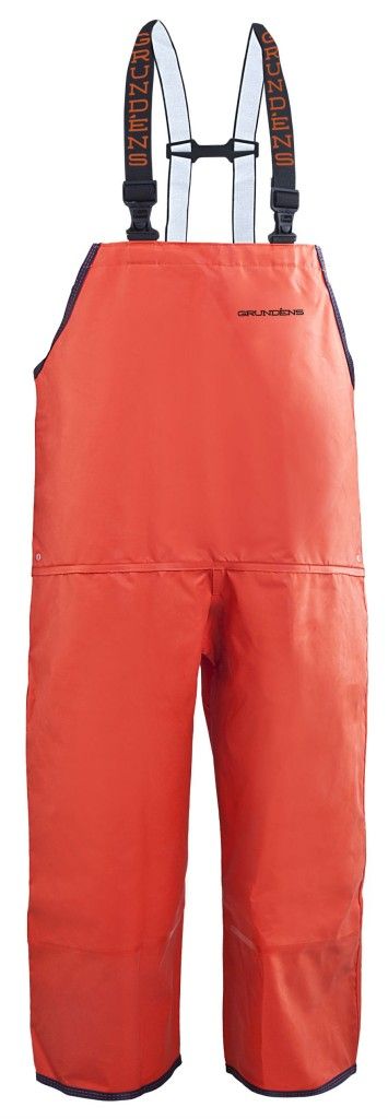 Selebukse med dobbelt materiale i fronten. Brystlommer påinnsiden og innvendig kne puter. Solide utskiftbare elastiskebukseseler med rask utløsning. 2 lags materiale og nylon forsterketi søm på sidene. PVC materiale.