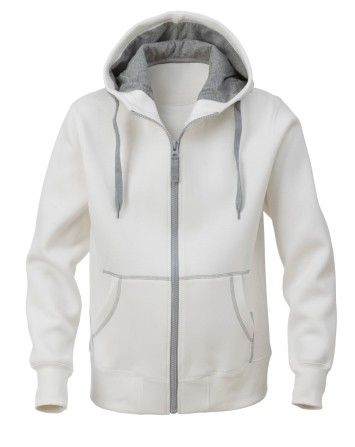 Innside av hette, glidelås og dekorsømmer i kontrastfarge.Figursydd. Framlommer. Ribbestrikkede mansjetter med elastan. Vekt320g/m2 Str. S-2XL