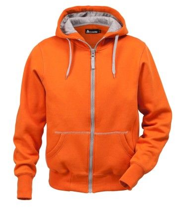 Innside av hette, glidelås og dekorsømmer i kontrastfarge.Framlommer. Ribbestrikkede mansjetter med elastan.Vekt 320g/m2 Str. S-3XL