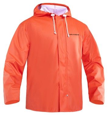 Jakke med justerbar hette. Skjulte knapper med storm klaffer.PU materiale. Vekt 170g/m2. Str. S-5XL.