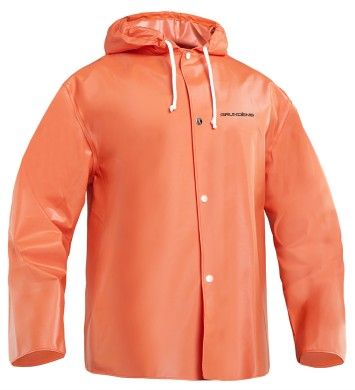 Jakke med doble knapper. Storm klaffer og justerbar hette.Bevegelig passform. PVC materiale. Vekt 330g/m2.Str. XS-3XL