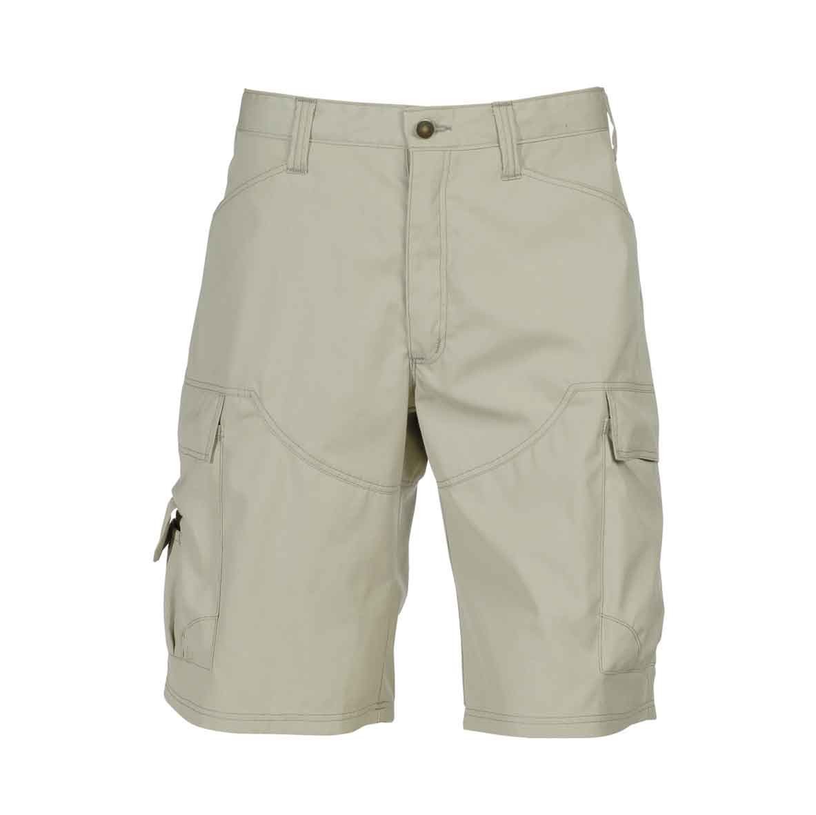 To stikklommer. En baklomme med glidelås. To lårlommer med klaff. En telefonlomme. Metallglidelås i gylf.
