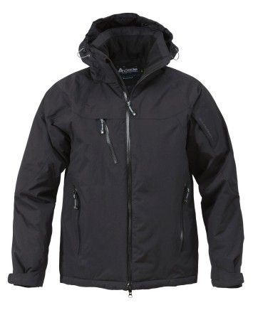Tapede sømmer. Vannavvisende glidelås foran. Brystlomme ogsidelommer med vannavvisende glidelåser. Ermelomme med glidelås.Innvendig kartlomme med glidelås og åpning for ledning tilhandsfree. Innerlomme til lommebok/telefon med glidelås. Innerlommei mesh til briller. Regulerbar og avtagbar hette. Mikrofleece påinnsiden av kragen. Regulerbar snøring i nedkant. Regulerbaremansjetter. Elastiske innvendige mansjetter i polyester nederst påermer med tommelåpning. Forlenget ryggparti. Glidelås i foretbak.